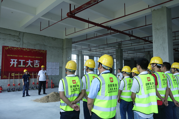 秋高气爽,阳光明媚,2018年9月13日10点08分,秋时电子科技(东莞)有限公司二期厂房装修综合工程项目开工仪式正式开始。