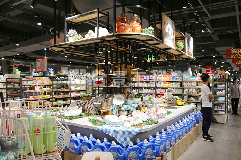 首先在超市分区设计上,设计工程师根据不同的作用进行了分区,将商品区域划分明确,标签、商品分类清晰明了;装修风格整体以实用为主,体现一种简洁但不简单的感觉;在色彩搭配上采用淡雅的色彩为主,商品的颜色已经很多了再加上各种促销的牌子颜色过多就会显得很混杂所以为了避免撞色,设计工程师在整体的内部色彩选用了淡雅的颜色,使得超市显得更加干净整洁和大方;照明设计配合商品的性质,用灯光和造型作为衬托点,激发顾客购买的欲望。