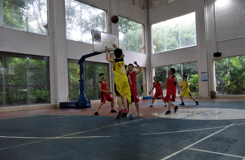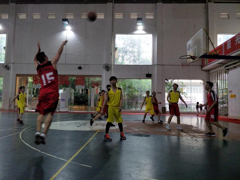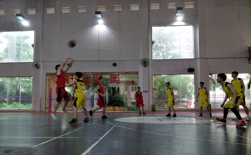 半小时后,随着一声哨响,比赛正式开始。双方队员你争我夺,左晃,右晃,过人,起跳,钩手,球进了!居安易买队打破场上僵局,率先得分。之后,合景队迅速加强防守,造成对方失误,快速反击,随即也开始得分。只见场上,背身单打,空切,无球跑位,强弱侧交叉掩护,挡拆,突破,各种篮球战术运用得有声有色。双方你追我赶,比分一直交替领先,整个赛场上掌声,欢呼声,呐喊声此起彼伏。