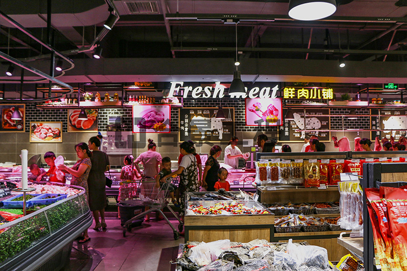 首先在超市分区设计上,设计工程师根据不同的作用进行了分区,将商品区域划分明确,标签、商品分类清晰明了;装修风格整体以实用为主,体现一种简洁但不简单的感觉;在色彩搭配上采用淡雅的色彩为主,商品的颜色已经很多了再加上各种促销的牌子颜色过多就会显得很混杂所以为了避免撞色,设计工程师在整体的内部色彩选用了淡雅的颜色,使得超市显得更加干净整洁和大方;照明设计配合商品的性质,用灯光和造型作为衬托点,激发顾客购买的欲望。