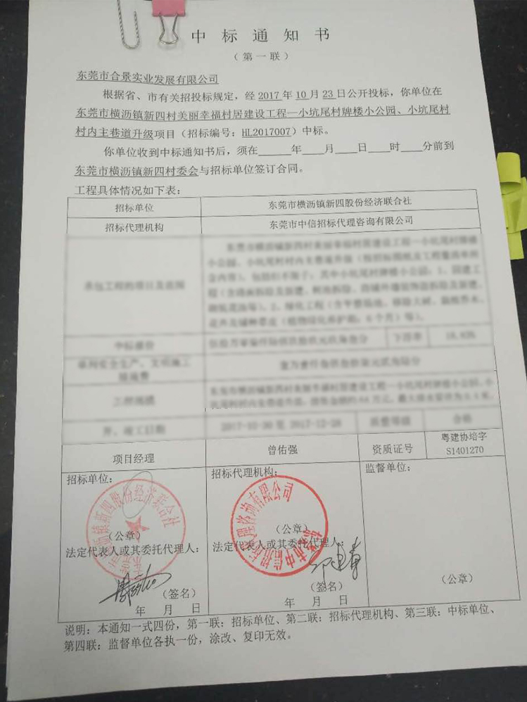 近日,市政项目部门再次传来好消息,公司成功中标东莞市横沥镇新四村美丽幸福村居建设工程——小坑尾村牌楼小公园、小坑尾村村内主巷道升级。